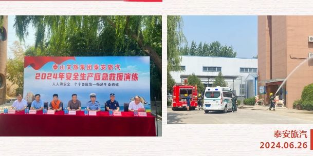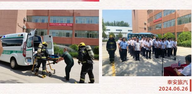 為全面強化公司安全管理,切實提高全體職工的安全意識和安全素養(yǎng),貫徹落實行業(yè)主管部門關(guān)于安全生產(chǎn)工作重要指示精神和安全生產(chǎn)月活動統(tǒng)一部署,6月26日上午,泰山文旅集團泰安旅汽結(jié)合實際,緊緊圍繞2024年第23個安全月“人人講安全 個個會應急——暢通生命通道”的活動主題,組織進行了辦公樓火災逃生綜合應急預案演練和車輛起火現(xiàn)場處置預案演練。本次活動邀請到市交通運輸局、交警支隊、消防大隊、中心血站、文旅產(chǎn)投集團相關(guān)單位領(lǐng)導蒞臨現(xiàn)場觀摩指導。